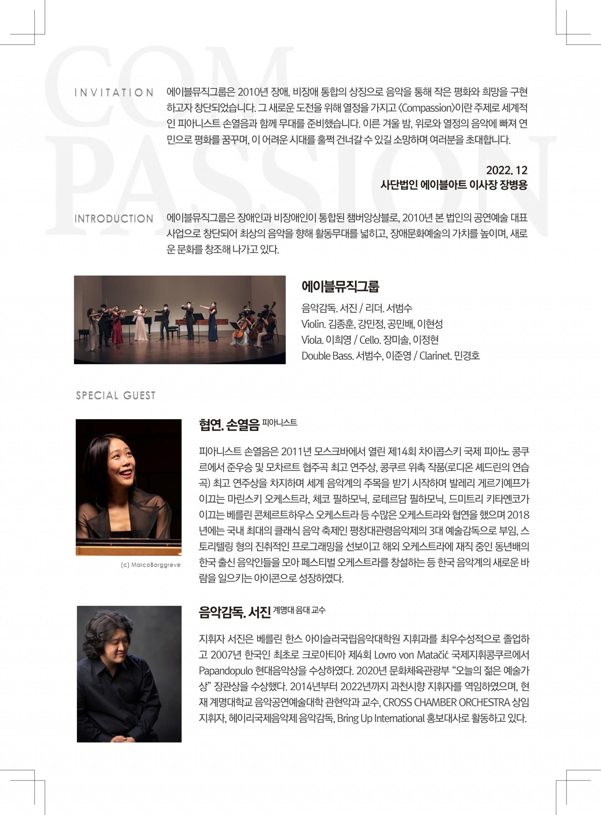 [공연안내] 제5회 에이블뮤직그룹 정기연주회 - COPASSION with 손열음